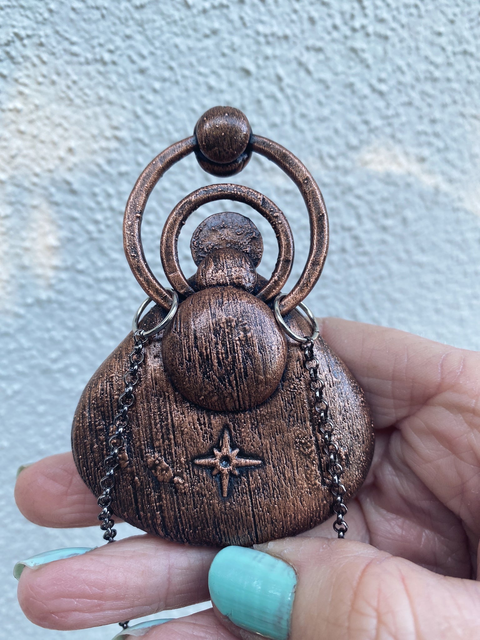 This piece is adorned with a serene crystal jewel of Moss Agate which works with creating balance in the body and within one’s life.